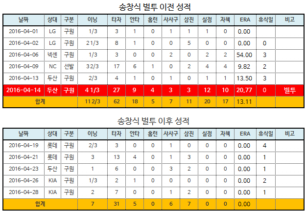 이딴 애미없는 행동은 1위 팀이어도 엄청난 비난을 피할수 없는데다 이렇게 말도 안되게 투수 쳐갈아가면서 팀 성적이 높아진 것도 아니고 대체 뭔 미친 목적인지 알 수 없다.