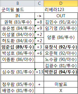 군대 작끠 털주홍 배동현 오동욱 장웅정 조은 이준기 문승진 조한민 호엌 안진 장규현 전승우 허인서 최인호 임종찬 유민 김준석