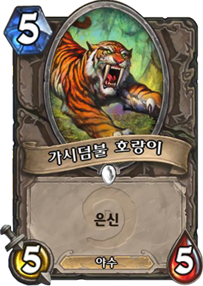 무난한 은신 카드다. 야수 시너지가 있어서 미드냥에 넣으면 한 턴 숨겨뒀다가 다음 턴에 확정적으로 사냥개조련사, 산양 사육사와 연계할 수 있고 야수노루도 이샤라즈의 징표, 박물관 감시자와 연계할 수 있다.