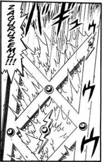 파문의 '엑셀러스 파르가' 처럼 X자 형태로 커다란 자케루가를 발사한다.