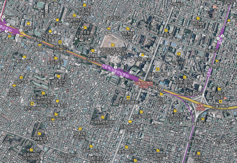 마천 지선 강동 · 둔촌동 · 올림픽공원 · 방이 · 오금 · 개롱 · 거여 · 마천
