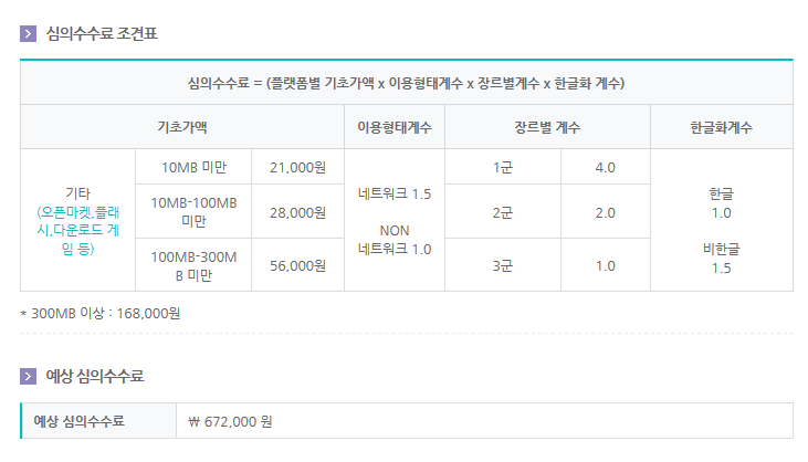 PC, RPG 장르, 개인, 한글화, 온라인 기능 없음으로 냈을 경우의 금액이다. 장난하시는? 취미로 내는 사람들이 없는걸 알만하네.