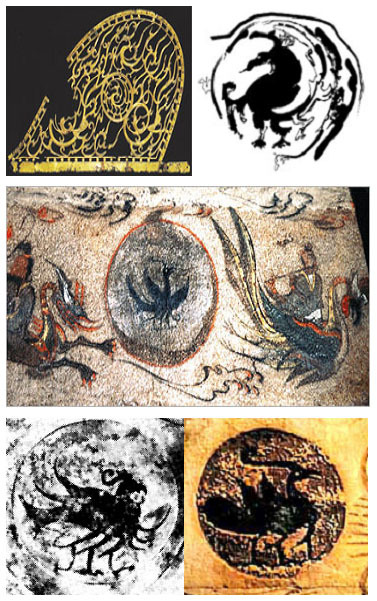 이런 문양들은 고구려 '해뚫음무늬 금동장식'에 있는 삼족오 문양을 베이스로 한다. 반대로 벽화 그림을 베이스로 해서 금동장식을 조각한걸수도 있다.