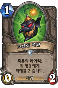 앰오보고 고블린 폭탄 덱 짜라는 건지 얘 소환하는 초록색 카드들이 나왔다. 중립 카드들도 있다.