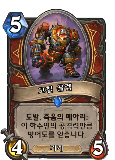 5코 4/5 기계, 도발, 죽메: 이 하수인의 공격력만큼 방어도를 얻습니다.
