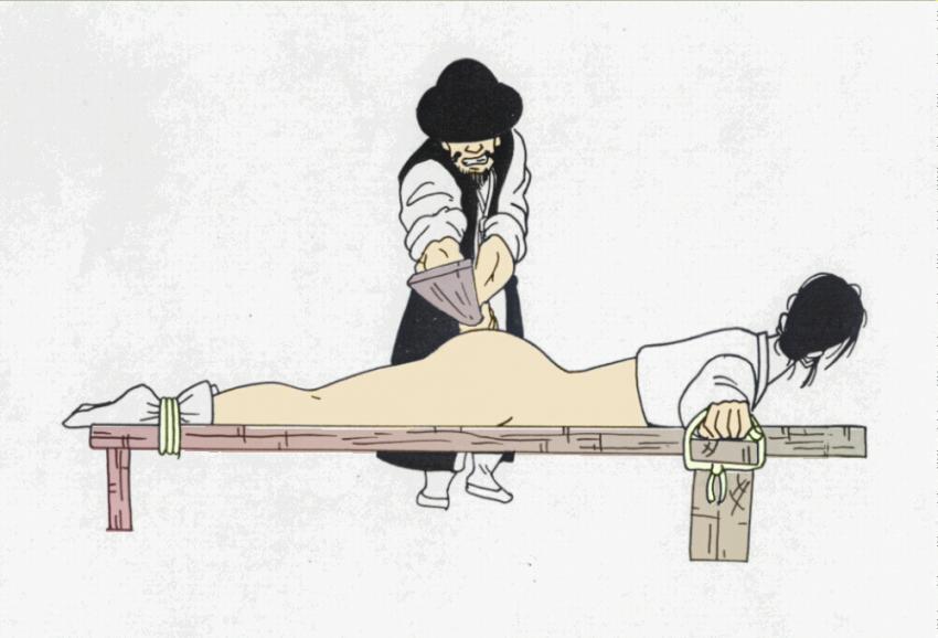 엉덩이를 치는데 까뒤집어놓고 하면 곤장의 받침이 사라지는 마법을 볼 수 있다.