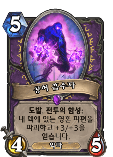 5코 4/5 악마, 도발, 전투의 함성:내 덱에 있는 영혼 파편을 파괴하고 +3/+3을 얻습니다.