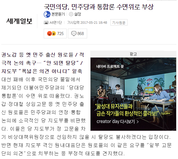 ㄴ 얘네 바른정당이랑 합당하는 거 가지고 싸우는 거 개꿀잼이다. 개판도 이런 개판이 없음 ㅋㅋㅋㅋ