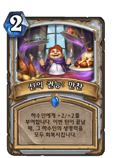 위대한 위즈뱅 님이 사랑하는 카드로 위즈뱅님의 견본 사제덱 두 개에 다 2장씩 들어간다. 이게 들어가서 사제 견본덱 승률이 그렇게 낮은걸지도 모른다.
