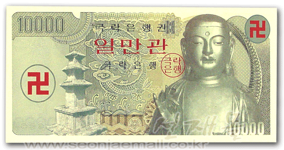저승 노잣돈 만드는 은행이다. 100뭉치에 4천원 이런다. 누가봐도 가짜돈인 골때리는 디자인이다.