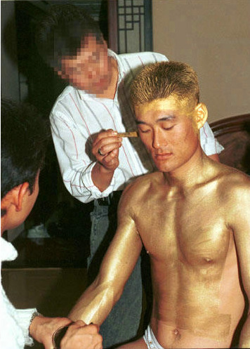 1994년 4관왕과 MVP를 따냈을때 기자들이 모든 금을 다 따간다고 해서 금칠을 하고 사진을 찍은게 위 사진이다.