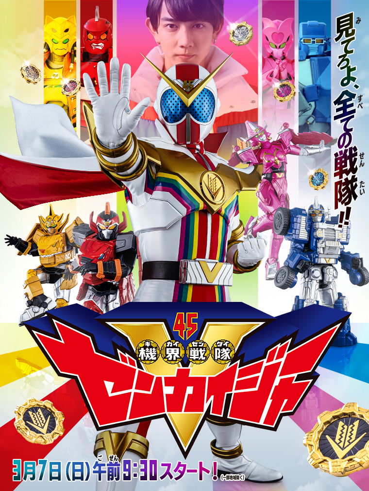 45번째 슈퍼전대 시리즈 작품. 해적전대 고카이저 이후 시도되는 콜라보 전대다. 그렇다고 고카이저처럼 다시 전대인원이 나오는게 아니라 가면라이더 지오같이 선배 전대의 힘이 봉인된 기어로 싸운다. 참고로 전대기어가 선배전대의 평행세계가 봉인된 것. 좆간과 키카이가 공존하는 걸 보아하니 먼 미래인 듯 하다.