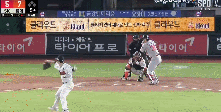 사실상 홈런성 타구였는데 사직 담장이 좆같이 높아서 홈런을 3CM차이로 뺐겼다.