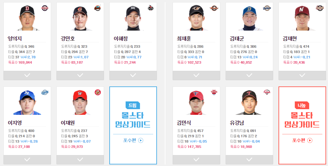 올스타 투표 페이스를 보아하니 올스타 할거같다... ㄷㄷ 1년만에 백업에서 올스타로