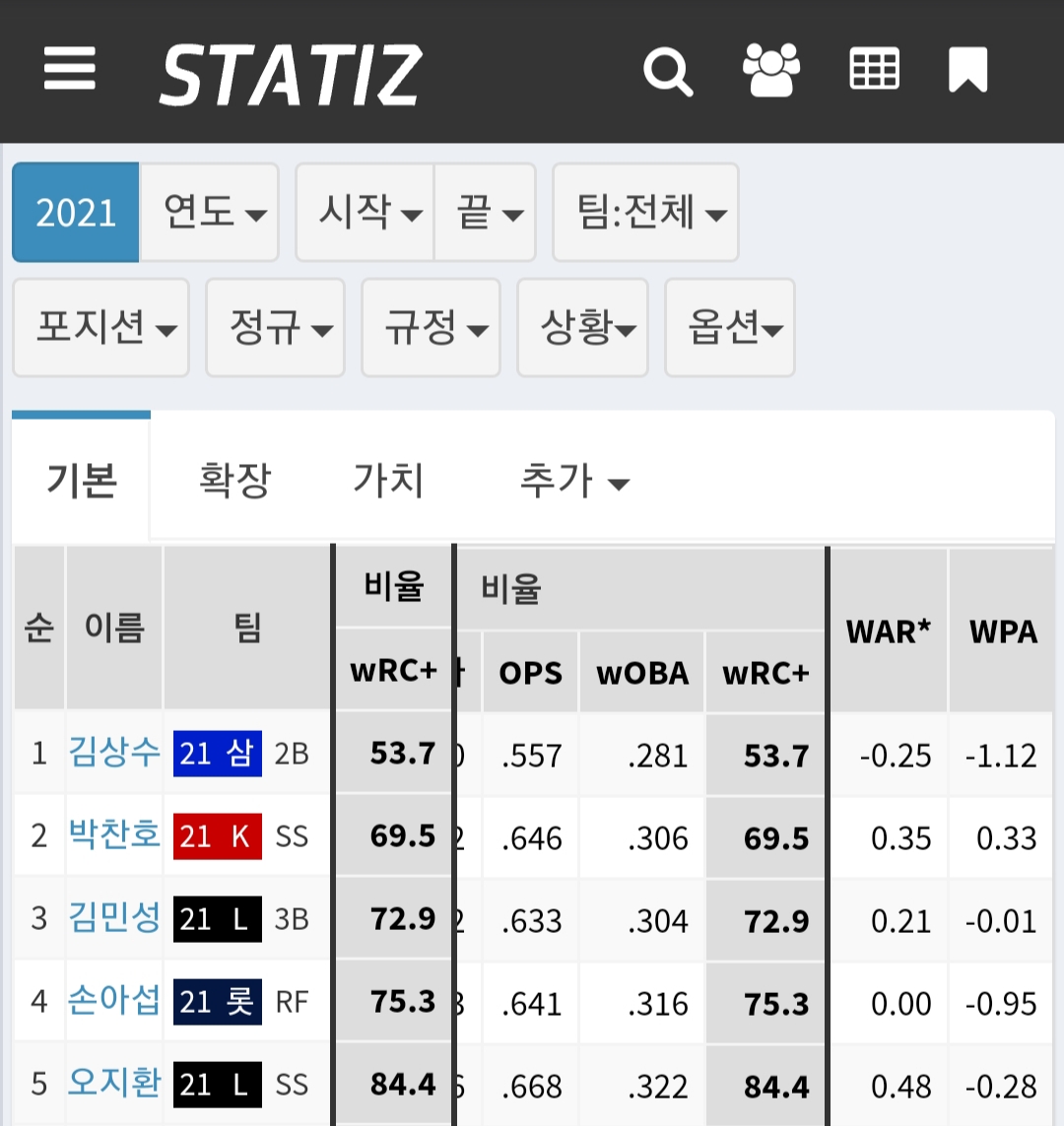 한줄요약 : 개상수는 잘하는게 주루밖에 없음. 근데 어처피 타격능력이 너무 차이나서 wwwww 강게이가 팀에 9.4승을 기여할동안 개상수는 2.3승을 기여한다.