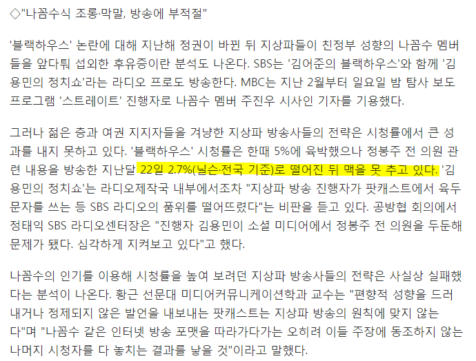 무려 sbs 노조와 사측에서 어준이의 편향성을 문제 삼고 고쳐지지 않을 경우 프로그램 폐지까지 언급하는 수준