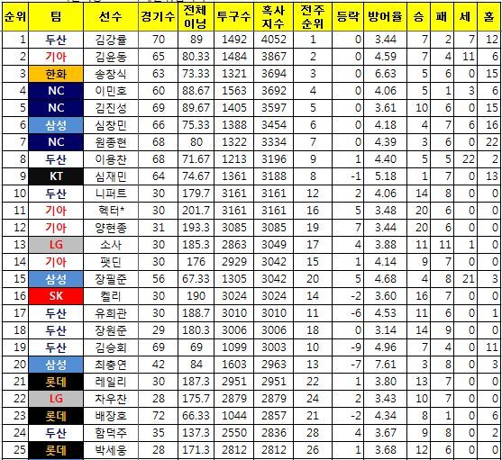 - 그래도 막판에 휴식좀 오지게 주고 4경기 잘던지는거 생각한다면 그냥 그런 수준이다. 그리고 칰전드 드립 작작해라 김주찬 이범호도 아니고 씨발 뭐야