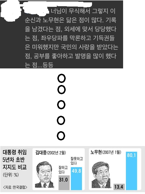 - 김대중[4]과 노무현만 짱짱맨이다. 이명박근혜 안 부러울 수준으로 노동자를 탄압했지만 최고존엄이다. 신자유주의,,, 노력,,,