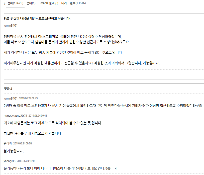 혹시라도 다시 하고 싶어질 수 있으니 1번을 추천하지만, 그냥 2번 3번 4번을 실행해서 무기한 차단먹고 다시는 들어가지 말자. 요즘은 5번을 실행하거나 부계정 파도 무기한으로 차단당하기 까지 한다. 개꿀