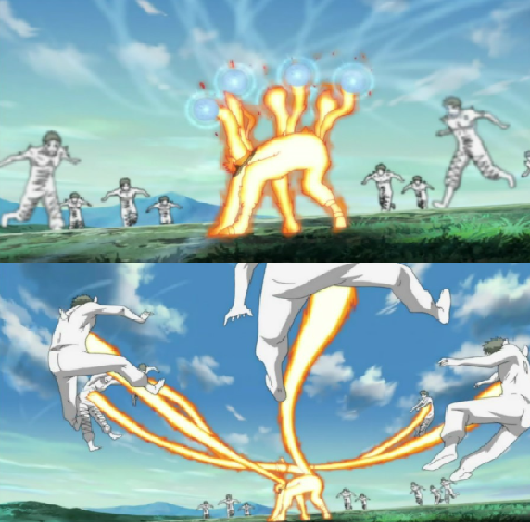 나루토마스가 자주 쓴다. 나루토 이새끼는 존나게 단순 무식해서인지 쓸수 주술이 두개 밖에 없는 병신이다. 나선환 +그림자 분신 이외 다른기술들은 이거 변형이라고 봐도 무방.