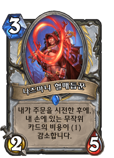 3코 2/5, 내가 주문을 시전한 후에, 내 손에 있는 무작위 카드의 비용이 (1) 감소합니다.