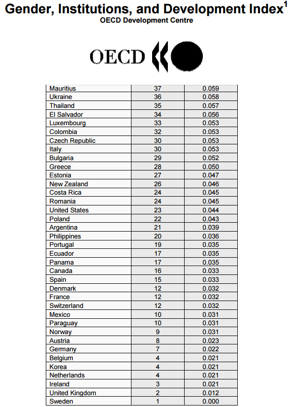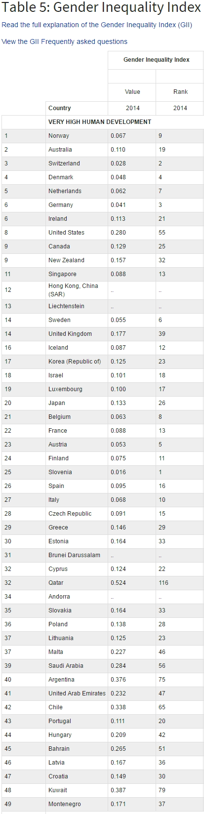 OECD의 GDI지수(성평등, 교육수준, 개발수준 정도)에서는 전세계 4위로 평가됐다.