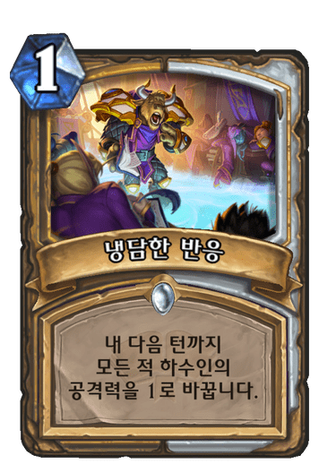 1코, 내 다음 턴까지 모든 적 하수인의 공격력을 1로 바꿉니다.