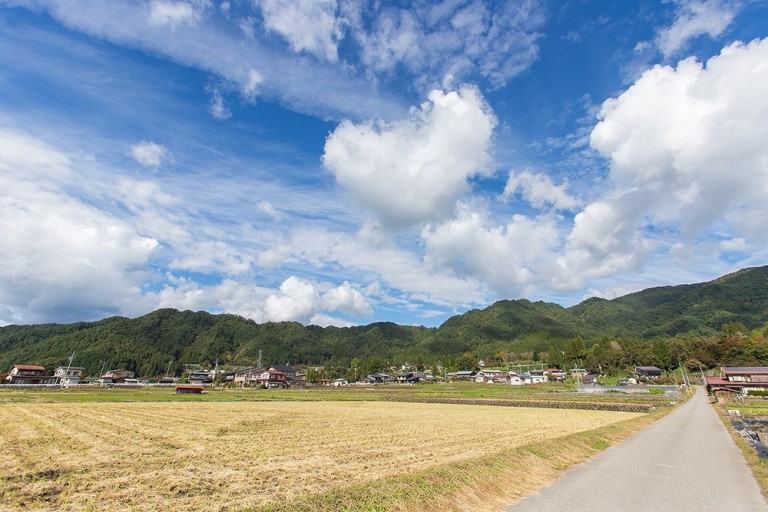 이토모리 호수의 모티브가 된 나가노 현의 스와 호수다. 매우 똑같다. 미츠하 일행이 하교길에 걷던 이토모리 마을 풍경이다. 기후 현에 위치해있다.