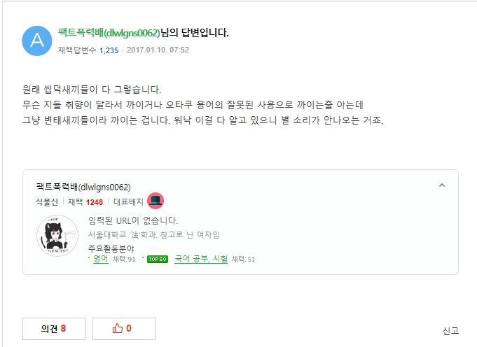 그나마 쓸만한건 지식in인데 운수안좋으면 윗사진같은 놈 만난다.