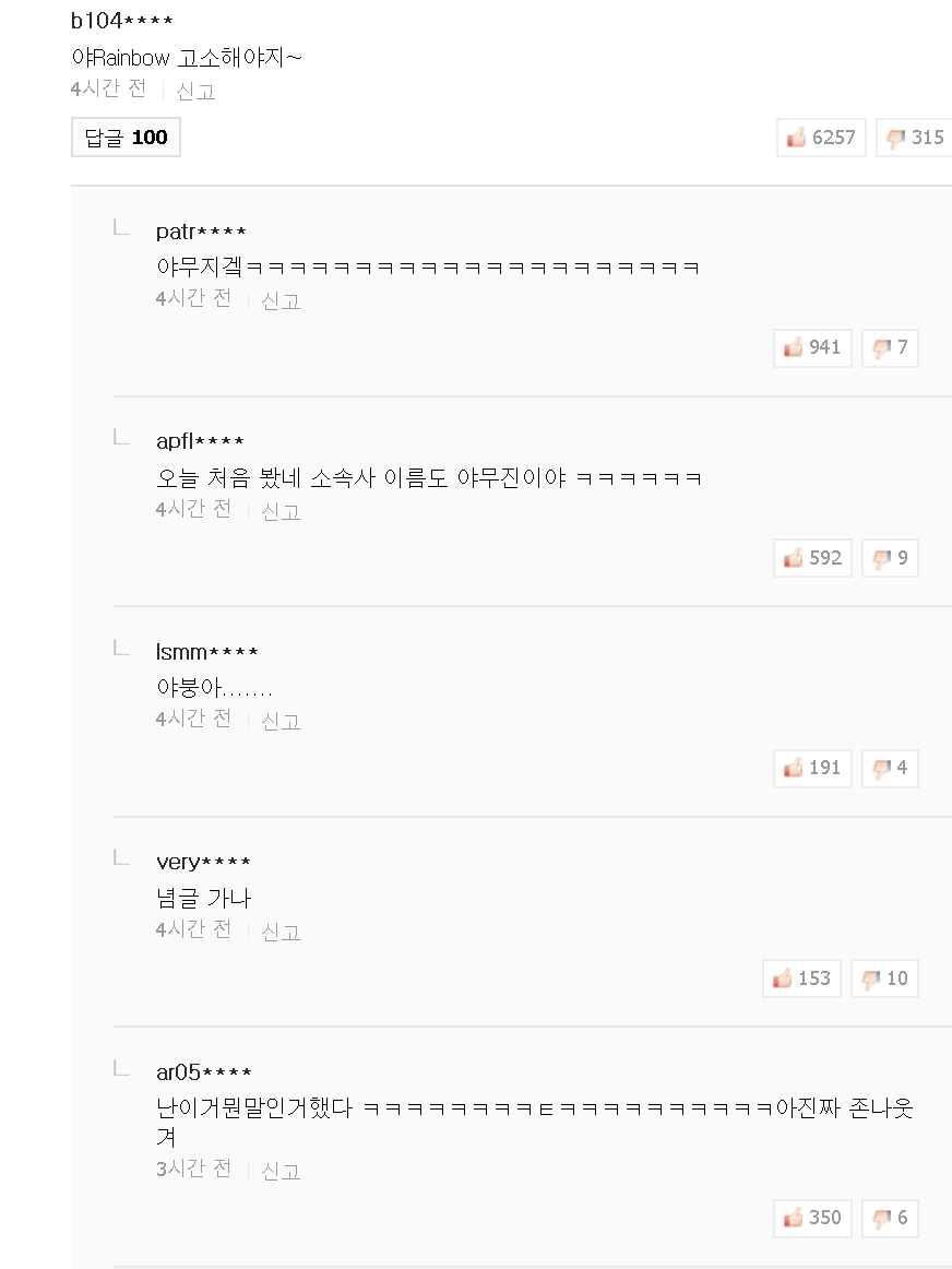 네이년 뉴스의 댓글란의 정식 이름이다. 참고로 네이버 뉴스치면 여기 오도록 했으니까 항목없어졌다고 당황하지 마라. 네이버 뉴스=그린야갤이다.