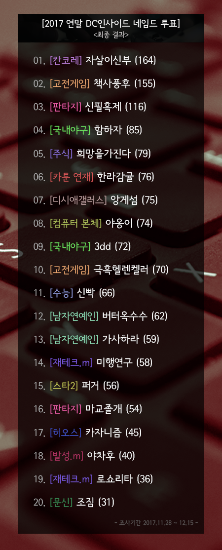 2017년을 빛낸던 네임드의 명단이다.