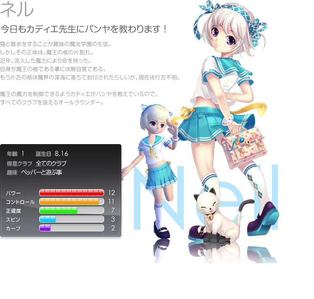 팡야의 캐릭터로, 나이는 1살로 가장 최연소자 (몸은 8살)이고 생일은 8월 16일이다.