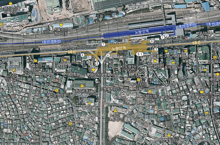 수산시장의 생선냄새, 고시충 냄새, 길거리 노점 음식 냄새가 섞인, 매우 판타스틱한 공기가 감도는 역이다. 이 역은 9호선과의 환승 통로가 없었다가 생겨서 환승게이트를 찾아야 한다. 출구로 나와서 다른 노선의 출구로 들어가면 1200원을 더 뜯긴다. 노량진 랜드마크인 육교는 얼마 전에 때려부쉈다. 최근 농협 옆에 노량진메가스터디 새 건물이 생김과 동시에 9호선에 3-1 출구가 하나 더 생겼다