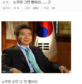 | 이 문서는 盧짱에 대해 다룹니다. 이 문서는 정치 빼고 모다는 게 없는 남자 盧짱에 대해 다룹니다. 경제도 잘하고 문화도 잘하고! 차도 잘 만들고! 배도 잘 만들고! 모다는 게 없는데!! |