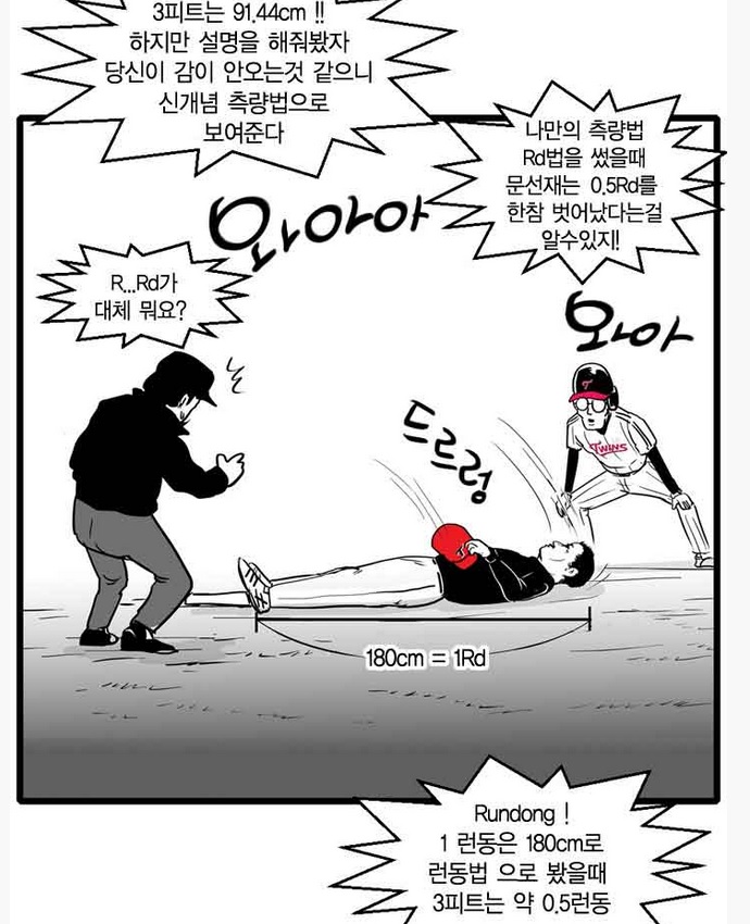 1 런동(기호 Rd)은 런동님이 2루 베이스로 부터 드르렁 누웠을때 해당하는 런동님의 길이를 표준으로 한다. 김기태감독이 고안하였으며, 2016년 5월 15일 조크보 학술협회에서 최종 채택이 되었다.