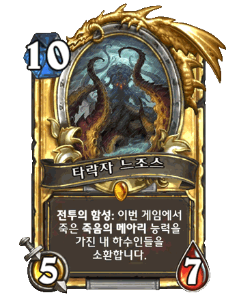 | 와아우! 황금 희귀카아드! 이 문서에서는 블리자드의 두 번째 밥줄인 돌망겜에 대해 다루고 있습니다. 패치 때마다 어-썸한 사기카드들을 잔뜩 만들어내다가 결국 명을 달리 하고 말았던 벤 브로드에게 감탄과 경의를 표하십시오. |
