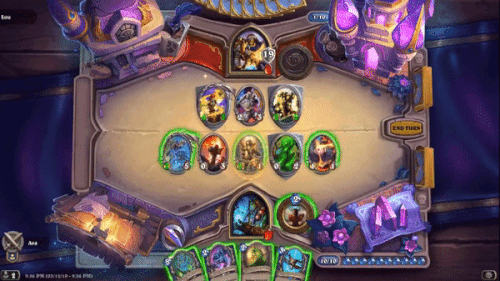 얘를 내면 무작위 주술사 주문을 2번 발견하고, 그 주문들을 전투의 함성으로 시전하도록 설정된 5코스트 5/5 악령을 손으로 가져온다.