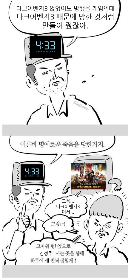 다크어벤저3가 저렇게 했어도 아 또 오바질이네 ㅡㅡ 이럴 반응일텐데 이 망겜이 했다는건 더욱 더 오바다 겜자체는 할맛한거 같다는 평 다만