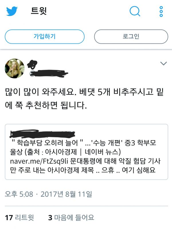 3. 누군가 조종하는 선동 트위터가 그 기사를 목표로 양념 명령을 하달한다.