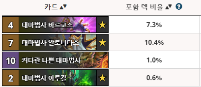 대마법사 바르고스는 마린 같은 카드다. 얘랑 같이쓰이는 카드들은 다야생갑니다. 주문석 족쇄 환영 정수.. 다야생갑니다. 이번에. 시대가 변했다. 4일만에 시대가 변할 것이기 때문에 이 친구는 쓰이기 힘들 것이다.