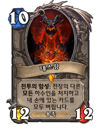 오리지널 공용 전설카드 10코 12/12 용족, 전투의 함성:다른 모든 하수인을 처치하고 내 손패를 모두 버립니다. 그 다음 안두인에게 갑니다.