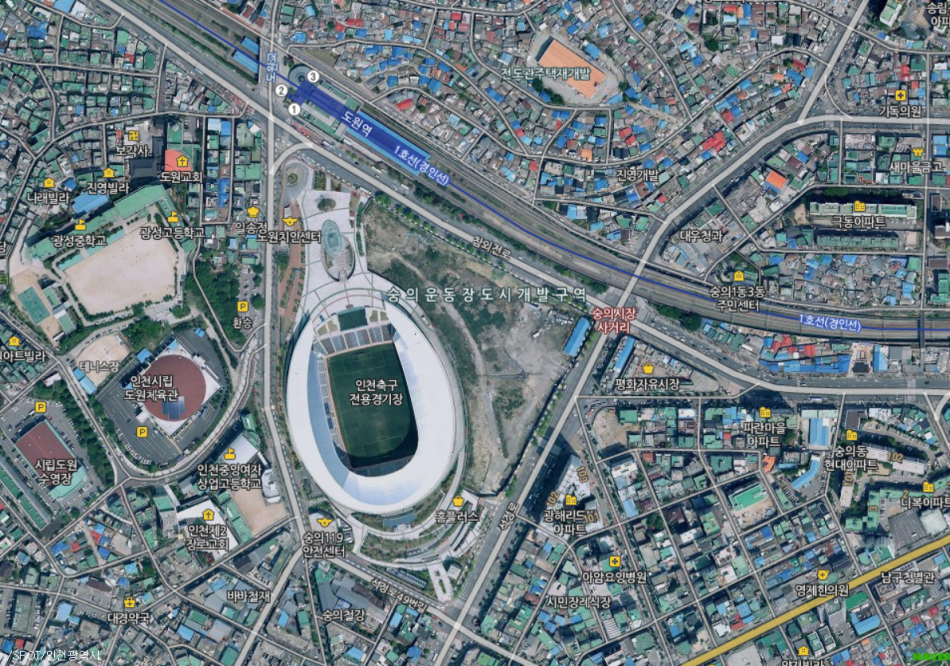 인천축구장 바로 앞에 있는 역