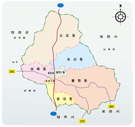 관할 법정동은 동두천동, 안흥동, 상봉암동, 하봉암동이다. 그나마 이 법정동들은 지도에서 검색하면 동네 구역이 잘 나온다.