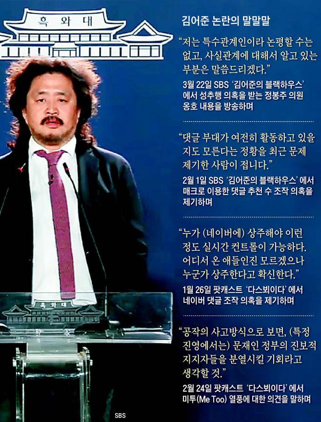 - ↑ TV조선, 드루킹 출판사 무단침입 사과 “태블릿 돌려줬다”, 2018년 4월 24일 미디어오늘 정철운 기자