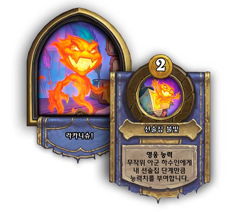 영능은 무작위 하수인에 자신의 선술집 단계만큼의 버프를 준다. 선술집이 4단계이면 +4/+4를 주고 최대인 6단계에서는 +6/+6을 준다.
