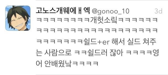 shield + er 이니까 실드러가 맞다고 주장하는 병신이 있었다. 영어 안 배운 새끼는 어느쪽이지?