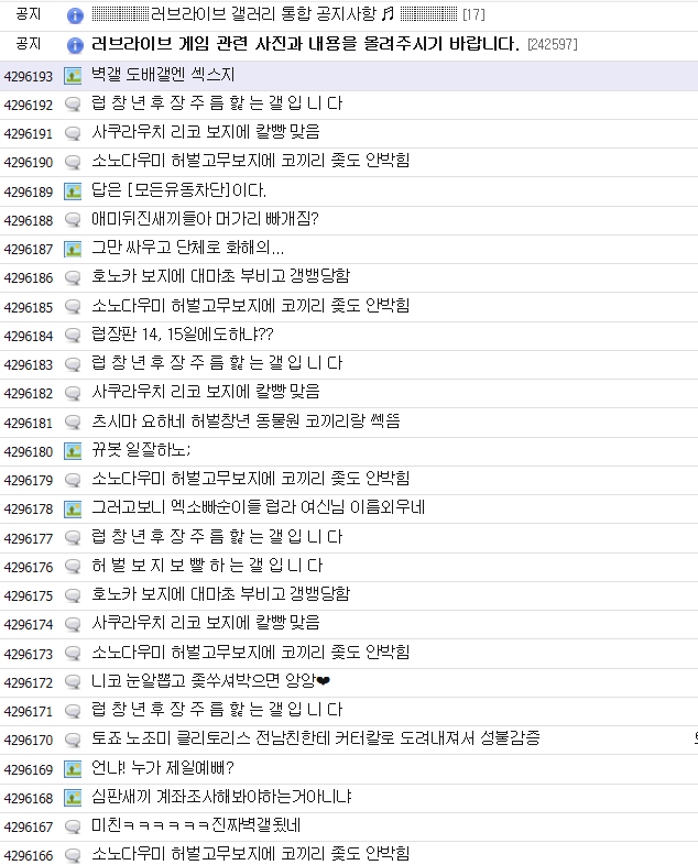 뭐 럽갤화력 얼마 안간다고 다시 원래대로 돌아오긴 했지만, 좆목의 무서움을 다시 한번 알려주게 된 사건이였다.