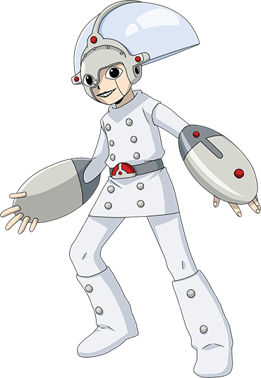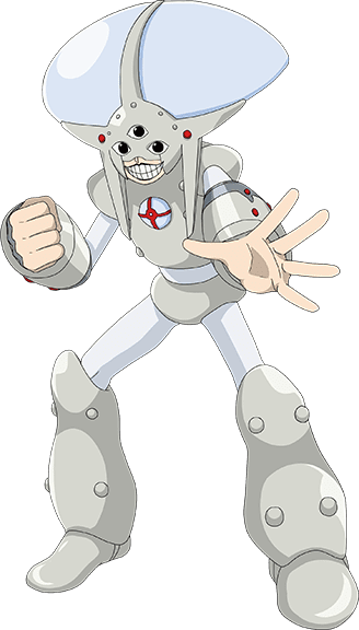 머리에 반구형 투구가 달린 인간형 로봇.