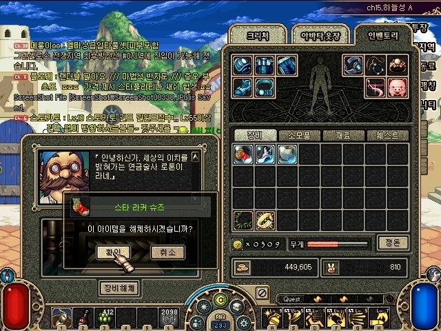 상점에서는 샤프아이 포션 제조법 같은 귀한 도핑 아이템이나 고블린 더스트 제조법 같은 예능템 등을 단돈 1만 골드에 취급하셨다.