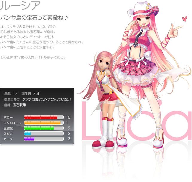 팡야의 등장인물, 나이는 17세, 생일은 7월 8일이다. 지금은 요절해서 더 이상 볼 수 없는 전설의 일러스트레이터 박정훈이 관여한 마지막 캐릭터이다.